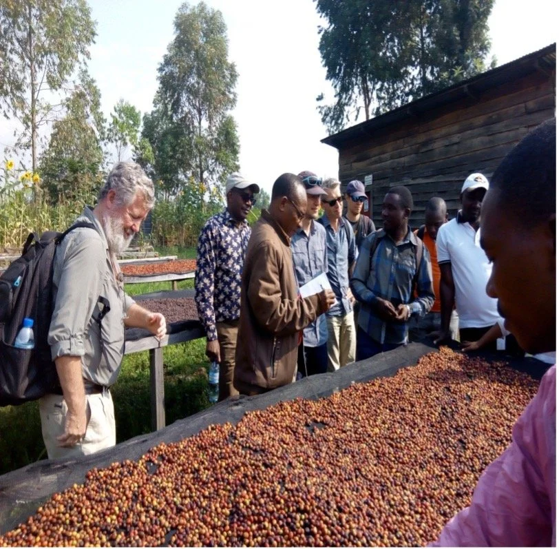 RAEK is a cooperative growing Congolese specialty coffee on the shores of Lake Kivu and around the border of Kahuzi Biega National Park. They support small farmers with fair prices, ensuring that both their production quality and living conditions can be improved.
